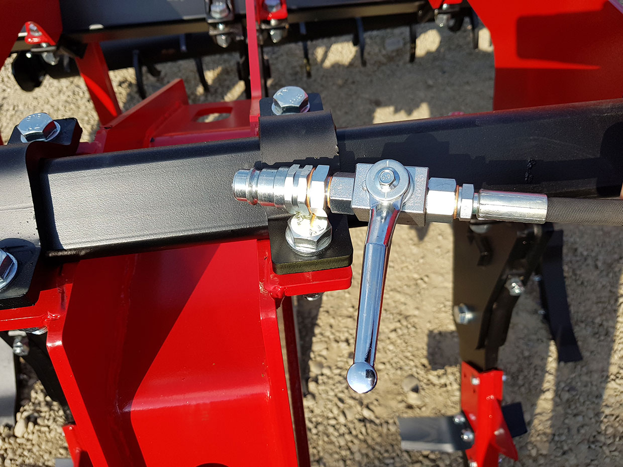 Intinzator manual (tendon reglabil) pentru tavalugul dublu hidraulic cu rol de pozitionare a ruloului fata de sol (vor fi reglati in permanenta paraleli cu solul) si un control al adancimi de lucru mult mai precisa impreuna cu spargerea bolovanilor |