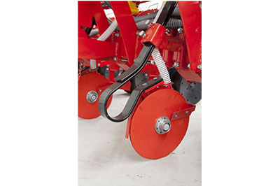 Sistem de semanare dublu disc cu roti duble, plasate langa cele doua discuri de insamantare. Acestea impiedica sablarea solului. |